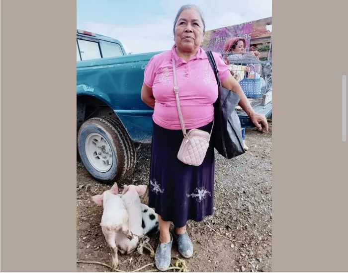 Hoy lunes, encontramos a doña Agustina en el tianguis de animales, ofreciendo unos puerquitos, a quienes incluso se les puede acariciar como si fueran perritos.