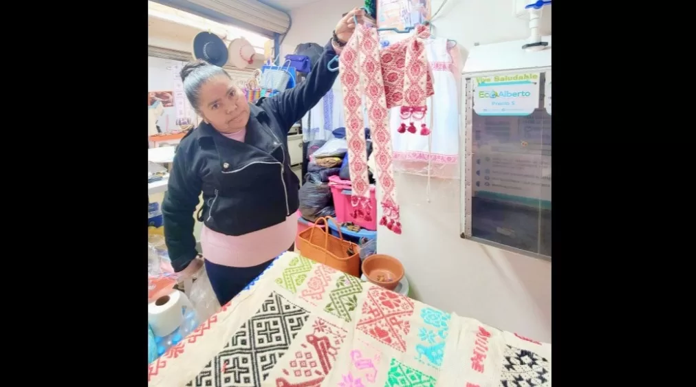 Doña Julia no sólo ofrece ropa, también zapatos, cubrebocas, carteras, sujetadores, y muchas cosas más, trabajadas con sus propias manos.