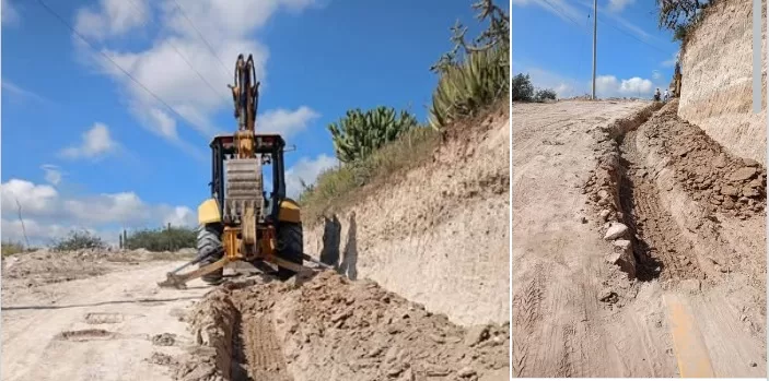 En la comunidad El Llano Primero, personal y maquinaria municipal llevaron a cabo trabajos de excavación para la construcción de guarniciones, con el objetivo de mejorar la imagen urbana y las condiciones de tránsito peatonal.